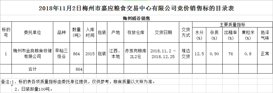 交易時間和地點(diǎn):2018年11月2日(星期五)上午10時15分。廣東省梅州市彬芳大道南161號梅州市糧食交易中心3樓。