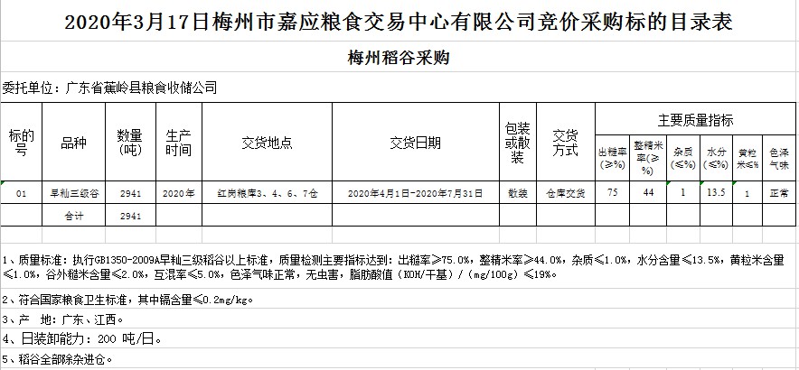 交易時(shí)間和地點(diǎn):2020年3月17日(星期二)上午10時(shí)20分。廣東省梅州市彬芳大道南161號(hào)梅州市糧食交易中心3樓。