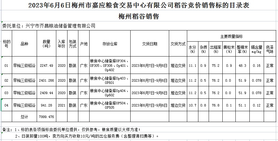 受客戶委托,梅州市嘉應(yīng)糧食交易中心有限公司定于2023年6月6日(星期二)舉辦糧食競價(jià)交易會(huì)。興寧市齊昌糧油儲(chǔ)備管理有限公司擬銷售2020年、2021年早秈稻7999.476噸。