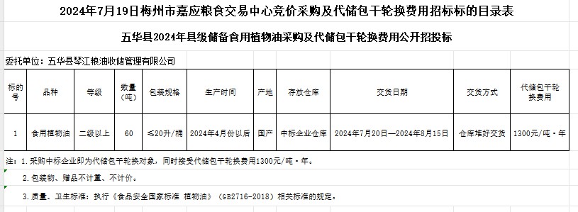 五華縣2024年縣級儲備食用植物油采購及代儲包干輪換費用公開招投標(biāo)公告